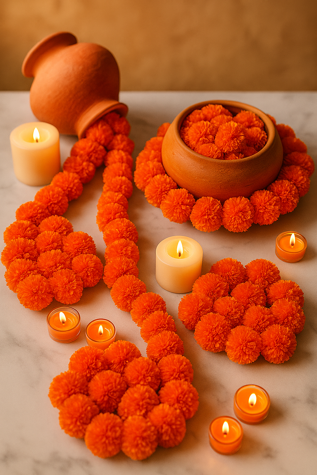 Brighten up your festive celebrations with these vibrant Artificial Marigold Fluffy Flower Wall Hangings. Crafted from recycled fibres, these ethnic garlands replicate the charm of real marigolds while being long-lasting, reusable, and hassle-free. Perfect for Diwali, Navratri, poojas, weddings, anniversaries, birthdays, housewarmings, or any festive event, these latkans add a colorful and traditional touch to your décor.